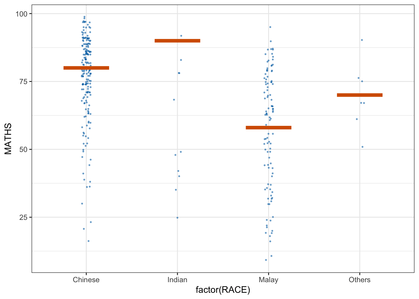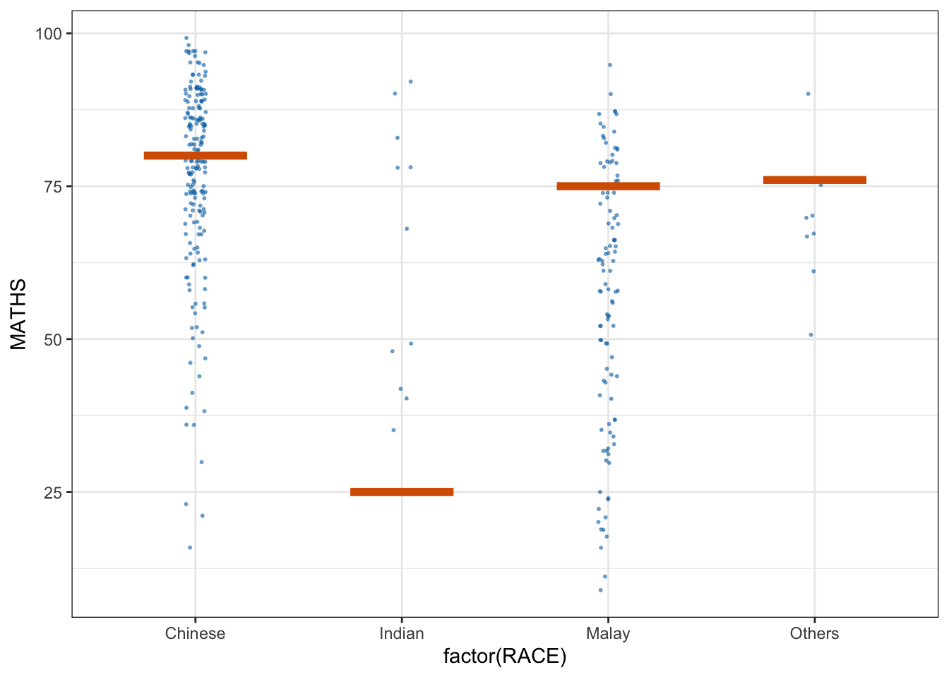 (aes(x = factor(RACE), y = MATHS))) +