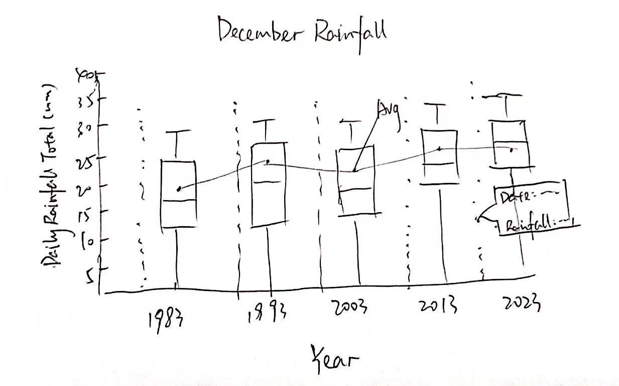I will choose rainfall records of a month of the year 1983, 1993, 2003, 2013 and 2023 in Sentosa Island and create an analytics-driven data visualisation.